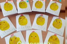 На праздник светлой "Пасхи", малыши приготовили поделки-открытки из пшена "Цыплята"