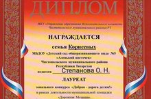 Поздравляем семью Корнеевых и педагога Степанову О.Н. ставших лауреатами в зональном конкурсе "Добрая дорога -детям!" в рамках деятельности муниципальной площадки "Дорожная мозаика"