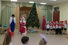 В средних группах "Ромашка" и "Подсолнушек", прошли новогодние утренники. Ребята вместе с Машенькой, Мишей, Дедом Морозом весело пели, танцевали и играли в веселые игры.
