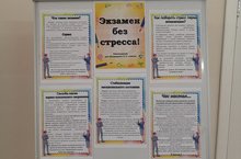 В рамках Всероссийской "Недели психологии" для учащихся 9, 11 классов оформлен стенд с практическими упражнениями на снижение уровня эмоциональной напряженности и расширения представлений о средствах профилактики и преодоления стресса в предэкзаменационный период.