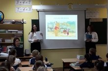 29 ноября в 3б классе (учитель Филиппова О.Г.) состоялось внеклассное мероприятие, посвященное английским писателям-юбилярам Л.Кэрроллу и А.Милну. Вели программу ученицы 10-ых классов Атурова М. и Галеева Л.. Ребята с удовольствием вспомнили Винни Пуха, Пятачка и Ослика, Алису, безумного шляпника и Чеширского кота и других. Также поучаствовали в викторине и посмотрели отрывки из мультипликационных фильмов на английском языке.