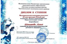 7 сыйныф укучысы Шакирова А.А. (сыйныф җитәкчесе Шанина Р.А.) "Безгә Яңа ел килә "муниципаль конкурсында "2021 ел символы белән Плакат"номинациясендә 2 дәрәҗә Диплом алганы белән котлыйбыз!
