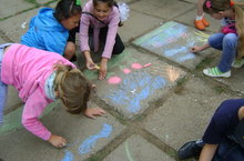 Конкурс рисунков на асфальте «Счастливое детство» прошел среди отрядов пришкольного лагеря «Солнышко». Лучшие работы - Шпанова Регина, Захарова Настя, Семенова Аня («Лучики»), Медова Хеди, Макурина Кристина («Подсолнушки»).