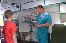 Экскурсия на станцию скорой помощи вызвала большой интерес детей. Машину скорой помощи по современным требованиям показал и рассказал о ее возможностях Камалов И.К. Также провел мастер-класс по оказанию первой медицинской помощи утопающему.