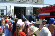 В пришкольном лагере «Солнышко» организована экскурсия в ФГКУ «67 пожарная часть ФПС по РТ». Дети познакомились с профессией пожарный спасатель, с техническими возможностями специализированной машины, посмотрели мастер-класс « тушение пожара».