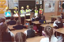 Гимназиядә беренче сыйныф укучыларын юл кагыйдәләре белән таныштыру эше дәвам итә. Бүген отряд 1 нче "Б" сыйныфында булды.