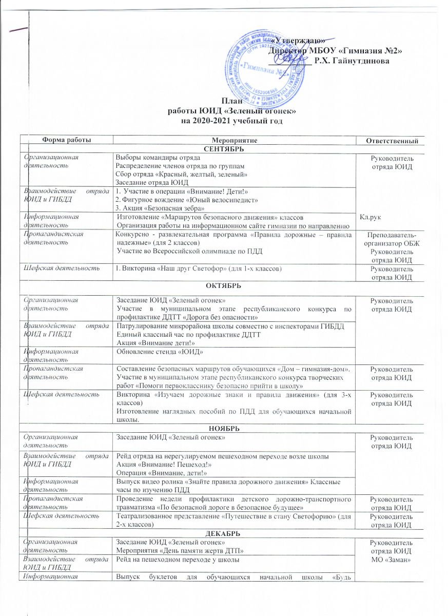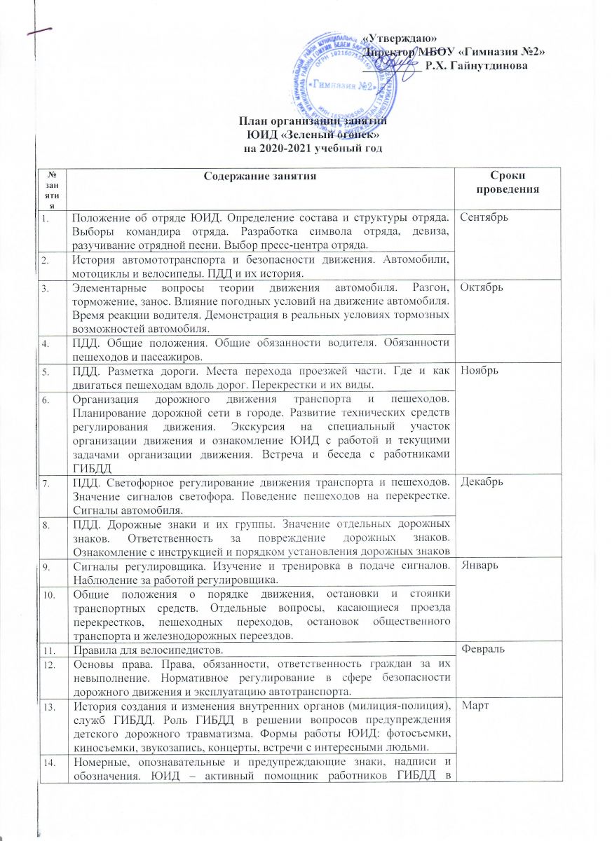 План занятий ЮИД на 2021-2022 учебный год