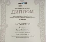 С 29 января по 2 февраля прошел региональный этап всероссийской олимпиады школьников по физике. Призером олимпиады стал Хомяков Тимур, ученик 10 класса. Поздравляем Тимура и его учителя Панина О. А. с замечательным результатом. Молодцы!