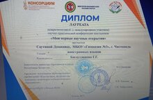 Поздравляем Саутину Доминику, ученицу 9а класса и учителя английского языка Багаутдинову Г.Г. с выступлением на межрегиональной (с международным участием) научно-практической конференции «Мои первые научные открытия». Доминика награждена дипломом лауреата. Желаем дальнейших успехов!