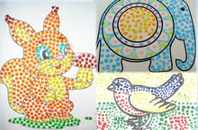 В рамках недели предметов спортивно-эстетического цикла ребята начальных классов с учителем ИЗО Дмитриевой Л.А. учились создавать рисунки, используя технику рисования точками.