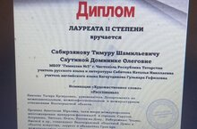 Дипломом лауреата II степени награждены Сабирзянов Тимур и Саутина Доминика в номинации «Художественное слово». Молодцы! Поздравляем ребят и их наставников Багаутдинову Г.Г. и Сабитову Н.Н.