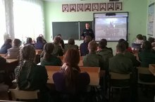 В воскресный день кадеты 9 "Б" и 9 "В" классов с учителем истории и обществознания, кандидатом исторических наук Бакеевой Р.Р. посмотрели в КРЦ художественный фильм о подвиге советских бойцов при обороне Москвы в 1941 году – «28 панфиловцев».