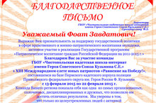 Благодарность Фоату Завдатовичу Сунгатуллину 03.03.2015