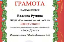Валеева Румина Заняла призовое III место открытого муниципального турнира способностей "SuperДетки".