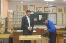 Сегодня учитель трудового обучения Тихонов Е. В. показал открытый урок в 7-х классах на тему "Нарезание внутренней резьбы".