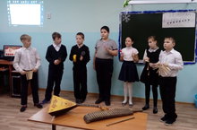 Учитель музыки Прусакова М. А. провела открытый урок в 4 классе на тему "Русские народные инструменты".