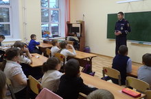 Сегодня инспектор ГИБДД провел беседу с учащимися начальных классов на тему "Профилактика ДДТТ".