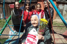 Сегодня учащиеся 9 класса с педагогами поздравили с Днем Победы труженика тыла, бывшего педагога школы, учителя начальных классов Чебареву Марию Романовну.