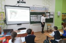 Камалова Г.Р. провела в 4а классе открытый урок по чтению на тему ""Восьмое марта" по М.Фроловой. Содержание учабного материала соответствует программным требованиям и направлен на формирование БУД с использованием ИКТ, словесных и поисковых методов, приемов сравнения и обобщения. Особое место уделялось элементам здоровьсберегающей технологии (физкультминутка, гимнастика для глаз, речевая разминка и т.д.). Несмотря на обилие материала, учащиеся не были перегружены. На уроке происходила частая смена видов деятельности, каждый этап имел запланированную протяженность времени. Важным элементом является положительная мотивация учеников (за правильный ответ учащиеся получали цветок) и доброжелательная психологическая атмосфера.
