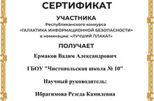 Поздравляем участника Республиканского конкурса "Галактика информационной безопасности" в номинации "Лучший плакат".