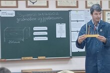 Учитель трудового обучения Тихонов Е. В. провел открытый урок в 5а классе по столярному делу на тему "Разметка и пиление заготовок из древесины".