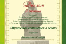 Участие в Межрегиональном конкурсе, посвященном 115- летию со дня рождения Героя Советского Союза поэта - патриота М. Джалиля и 76- летию Победы в Великой Отечественной войне.