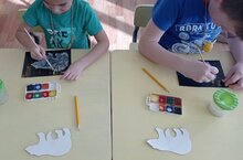 Рисование белого медведя на фоне северного сияния с использованием нетрадиционной техники.