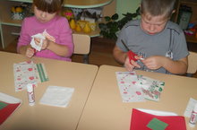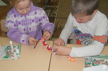 В преддверии праздника атмосфера в саду царит волшебная! Дети с удовольствием готовят цепочки из цветной бумаги. Вместе ждут прихода Деда Мороза и стараются украсить групповую для него очень красиво.