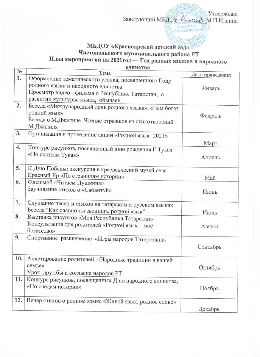 План мероприятий на 2021 год -Год родных языков и народного единства