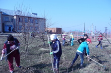 Учащиеся 7-9 классов и педагоги школы приняли участие в среднике по уботке территории села Красный Яр