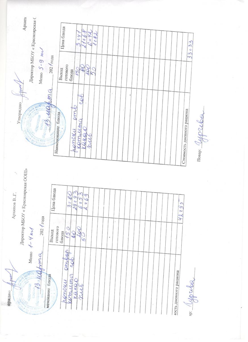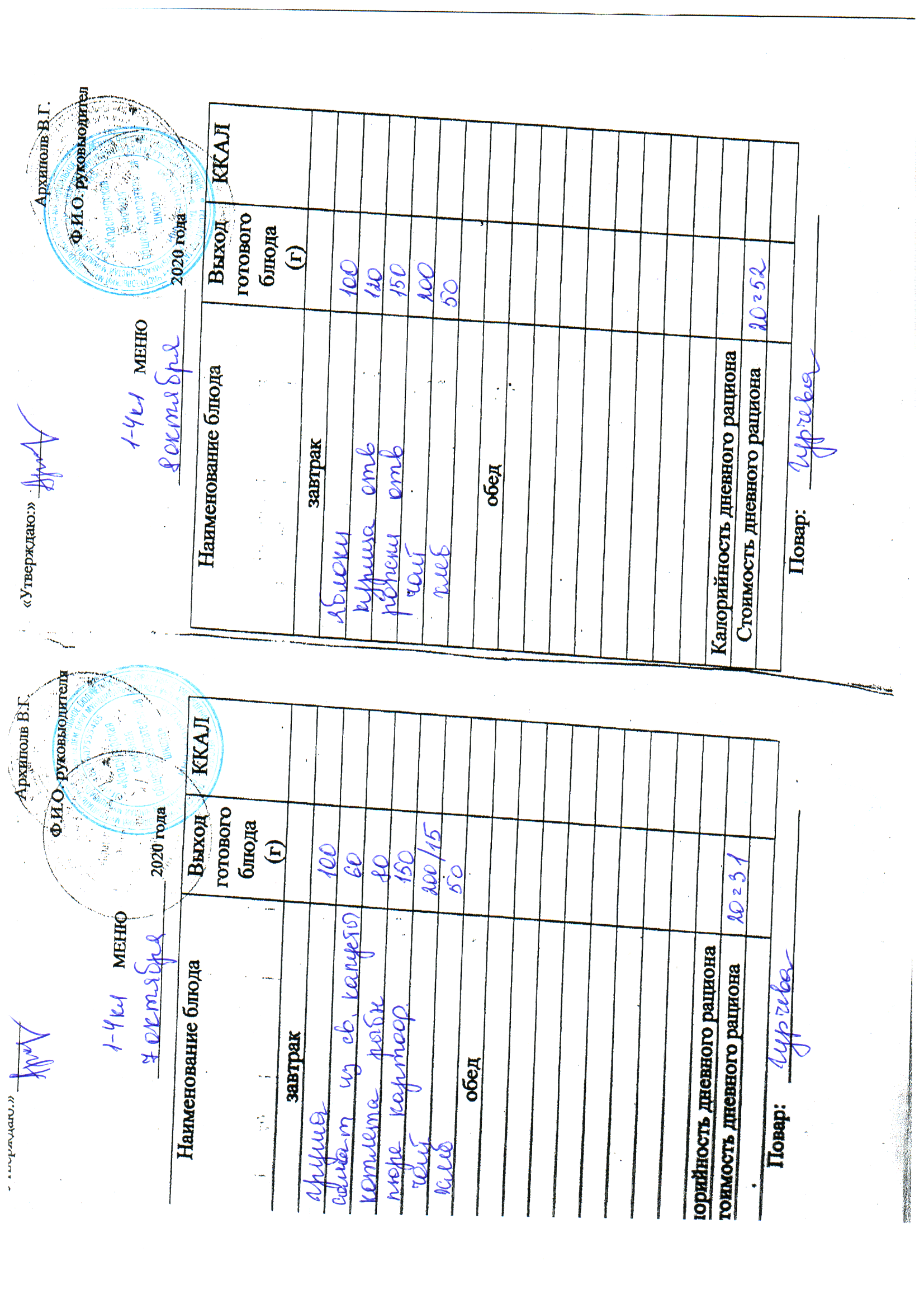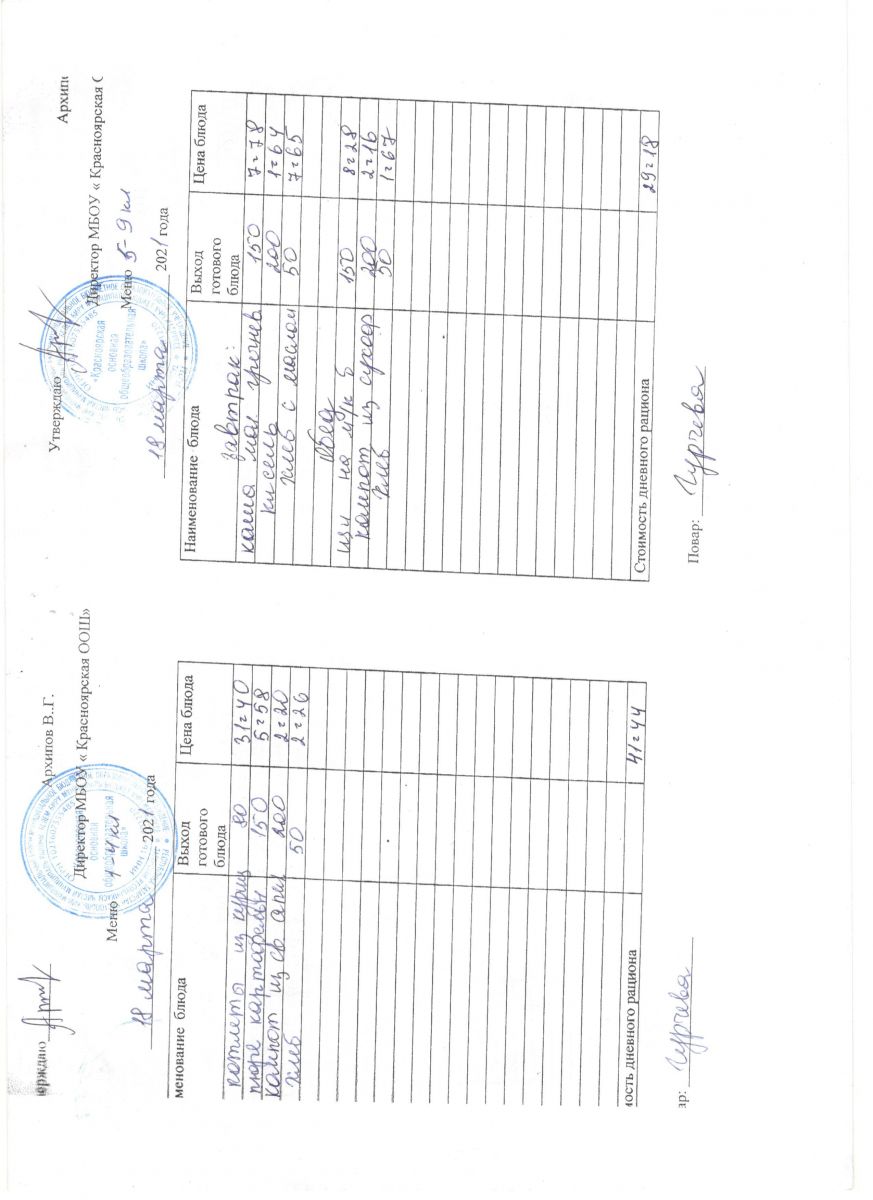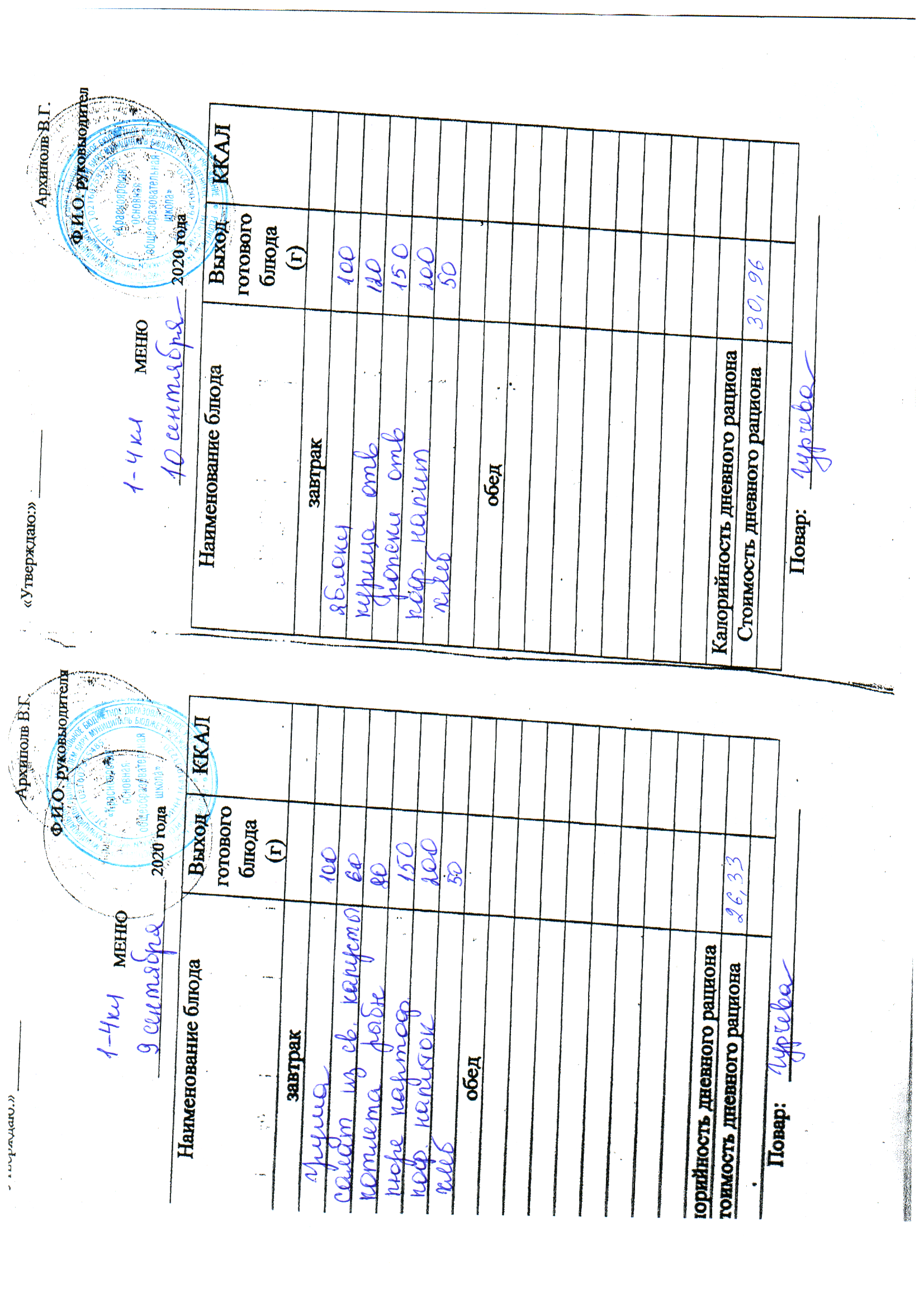 Меню учащихся 1 - 4 классов 1 неделя(зимний сезон) 2 неделя (зимний сезон)