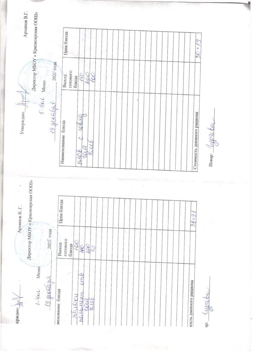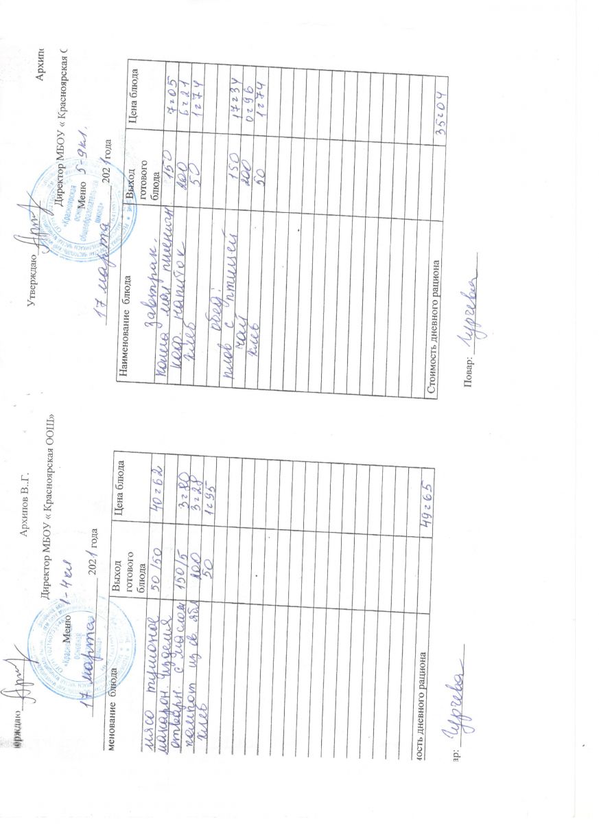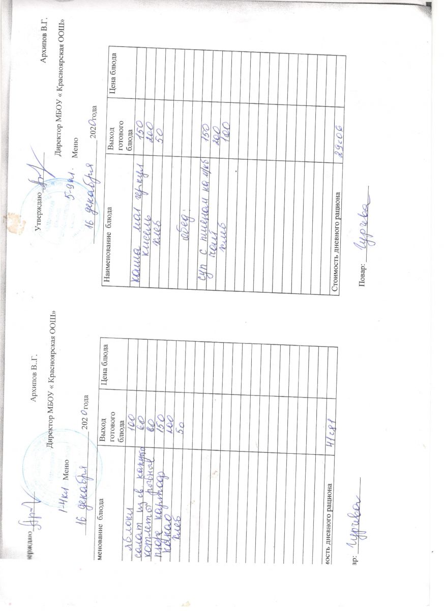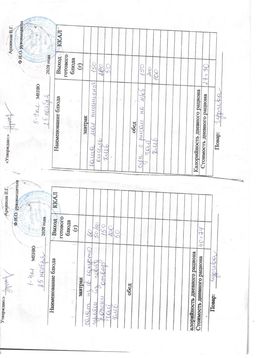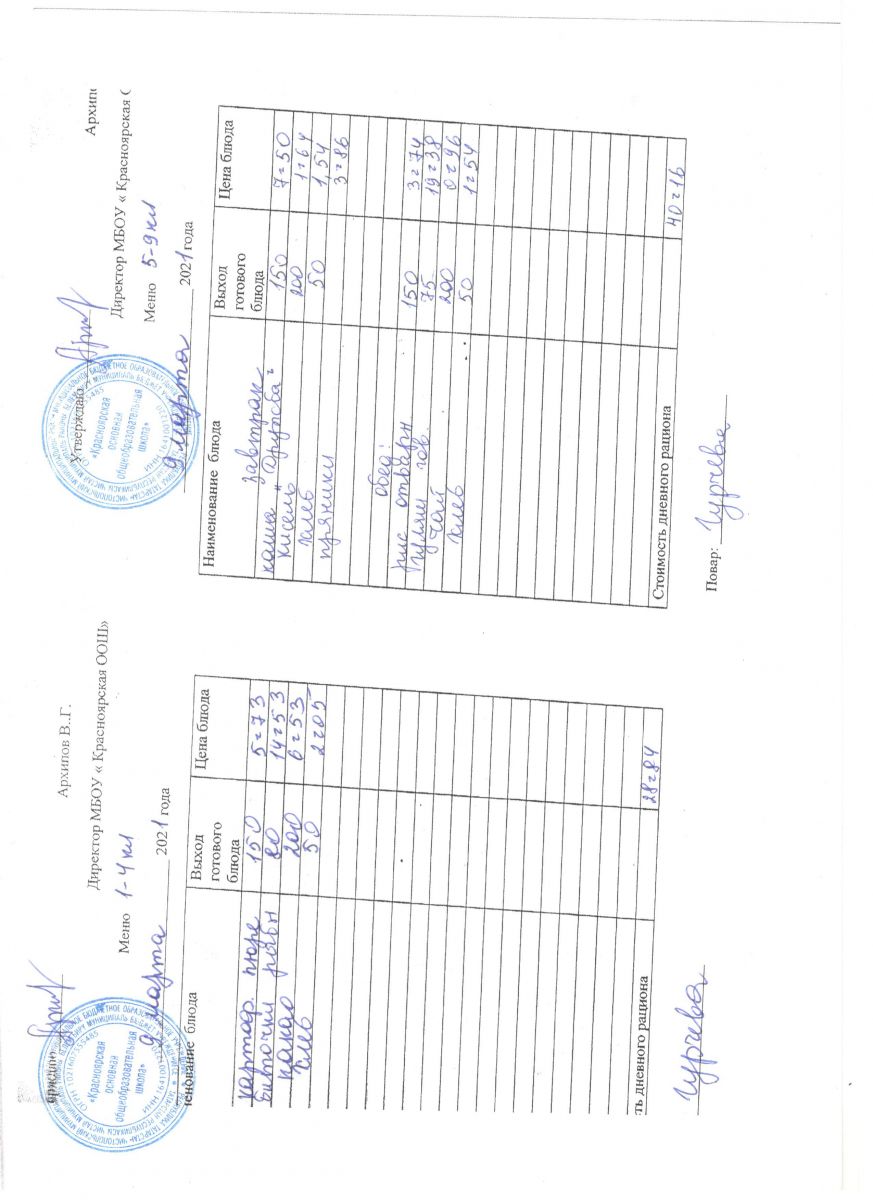 Меню учащихся 1 - 4 классов 1 неделя(зимний сезон) 2 неделя (зимний сезон)