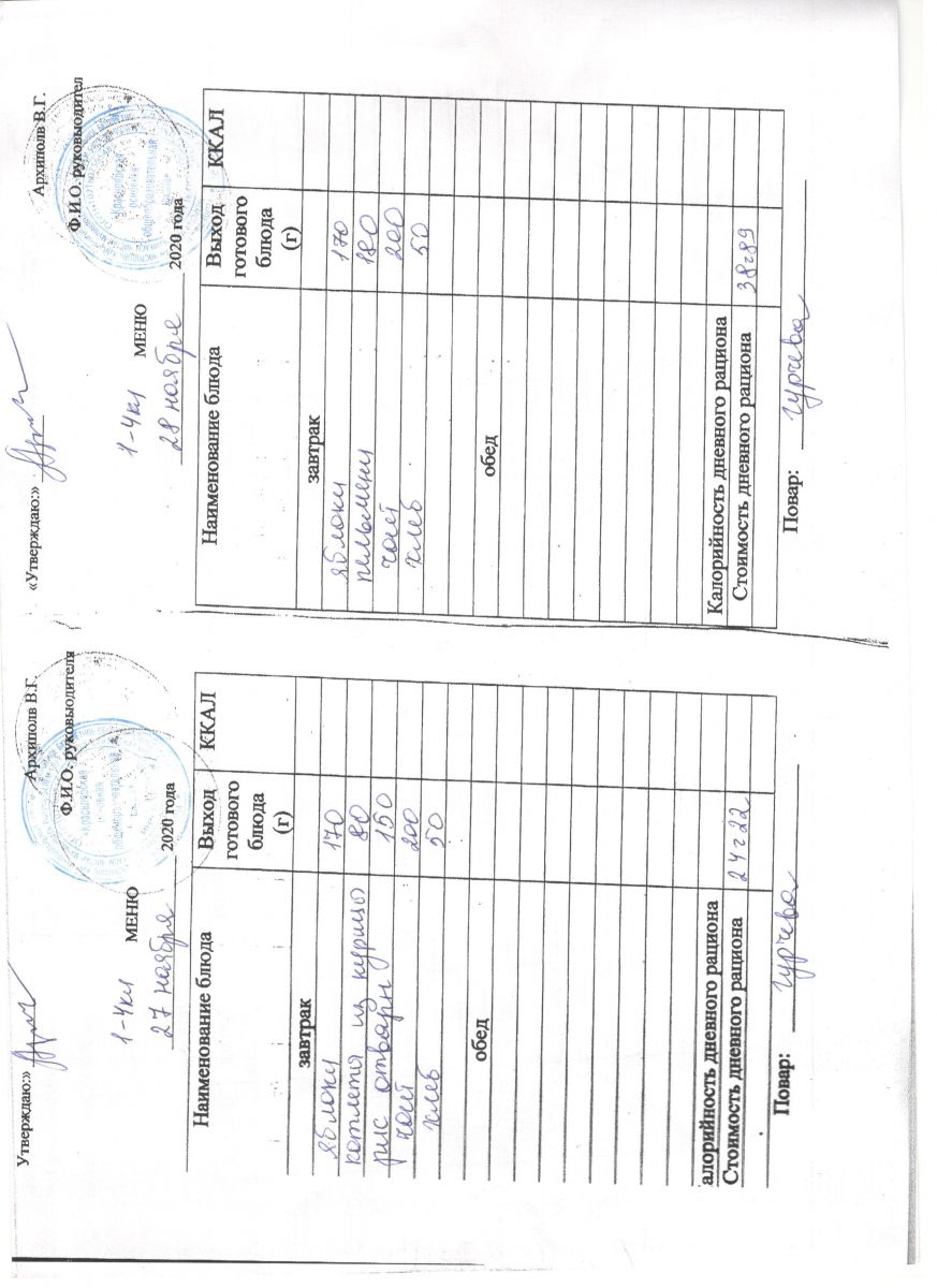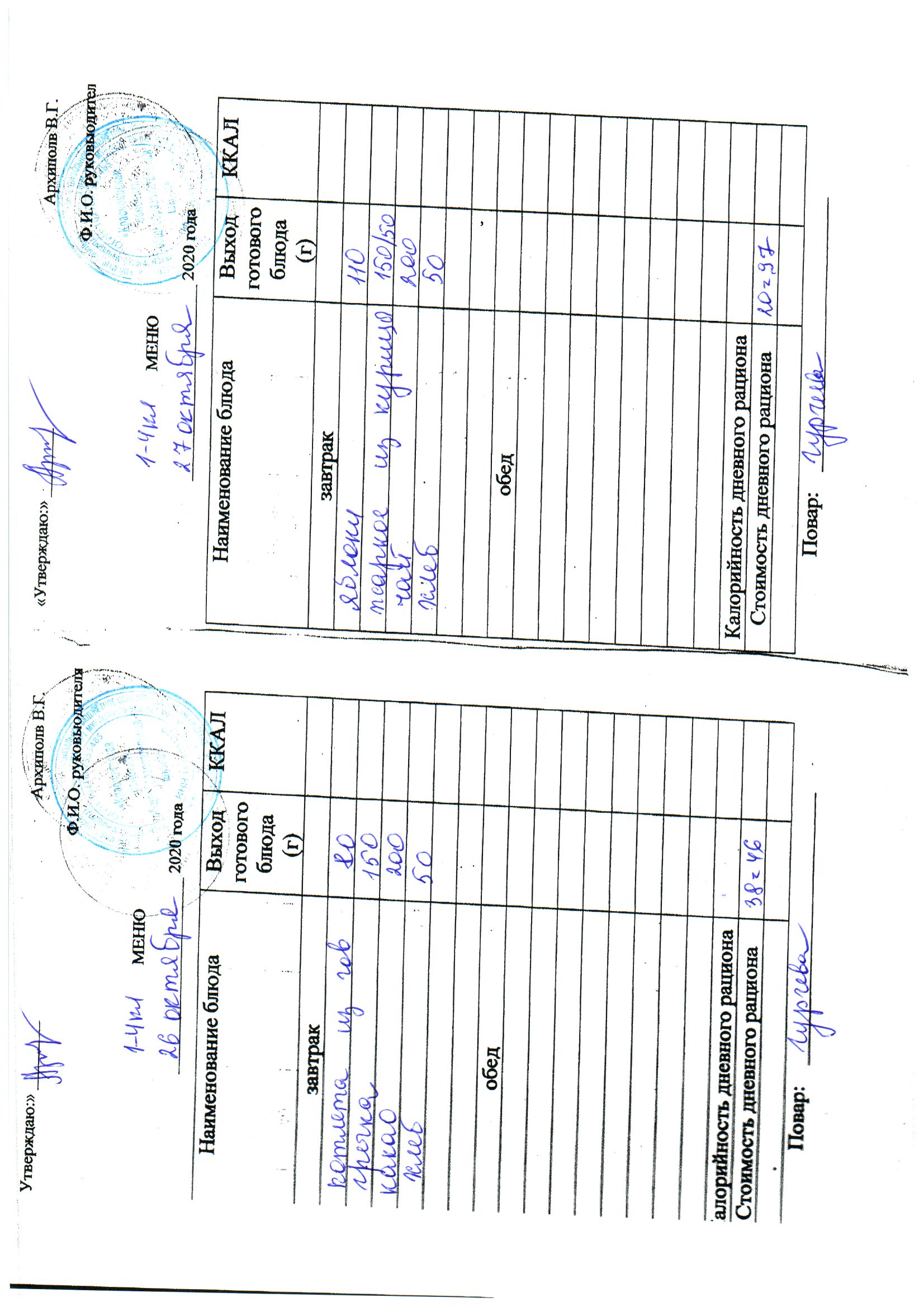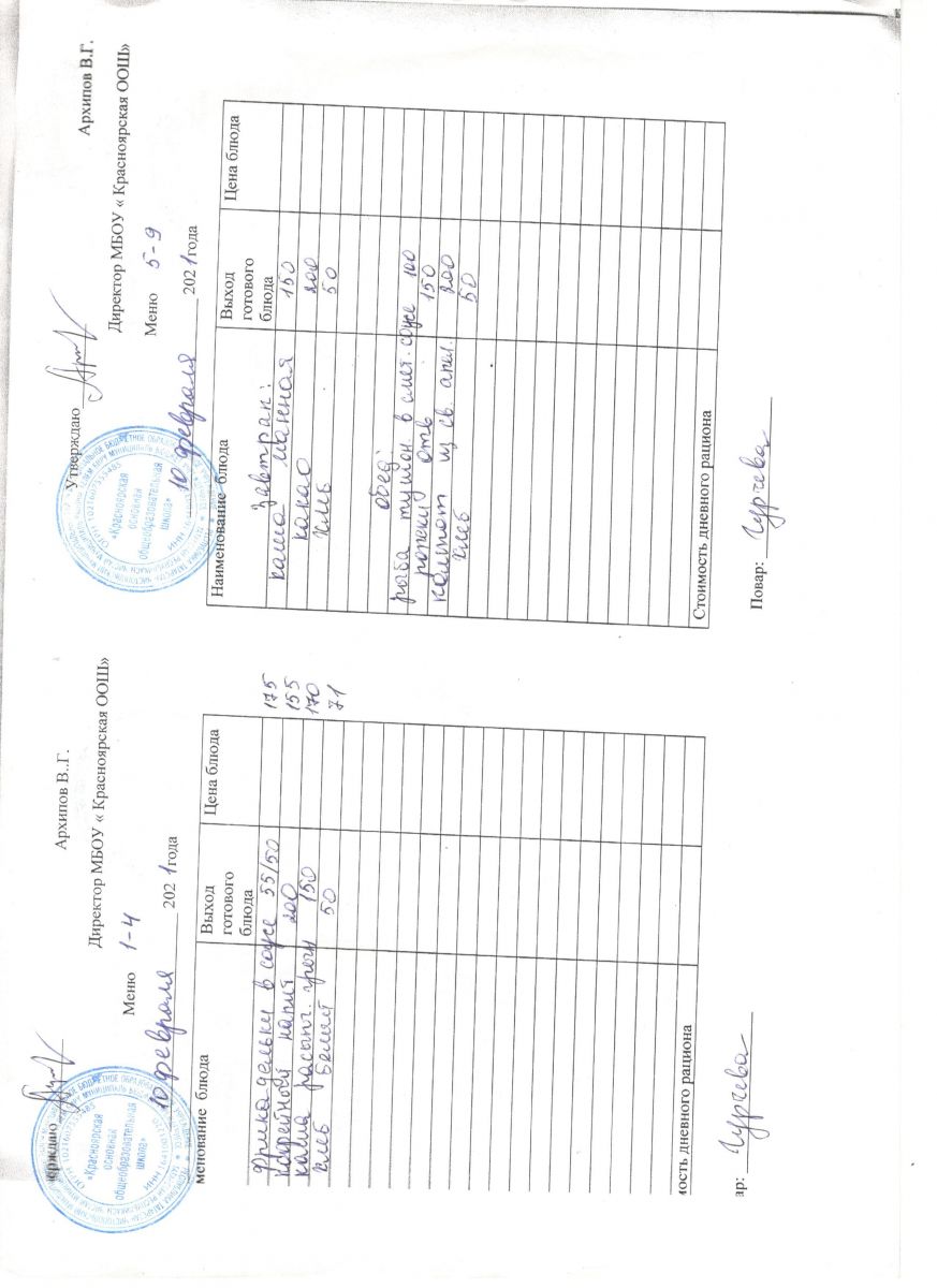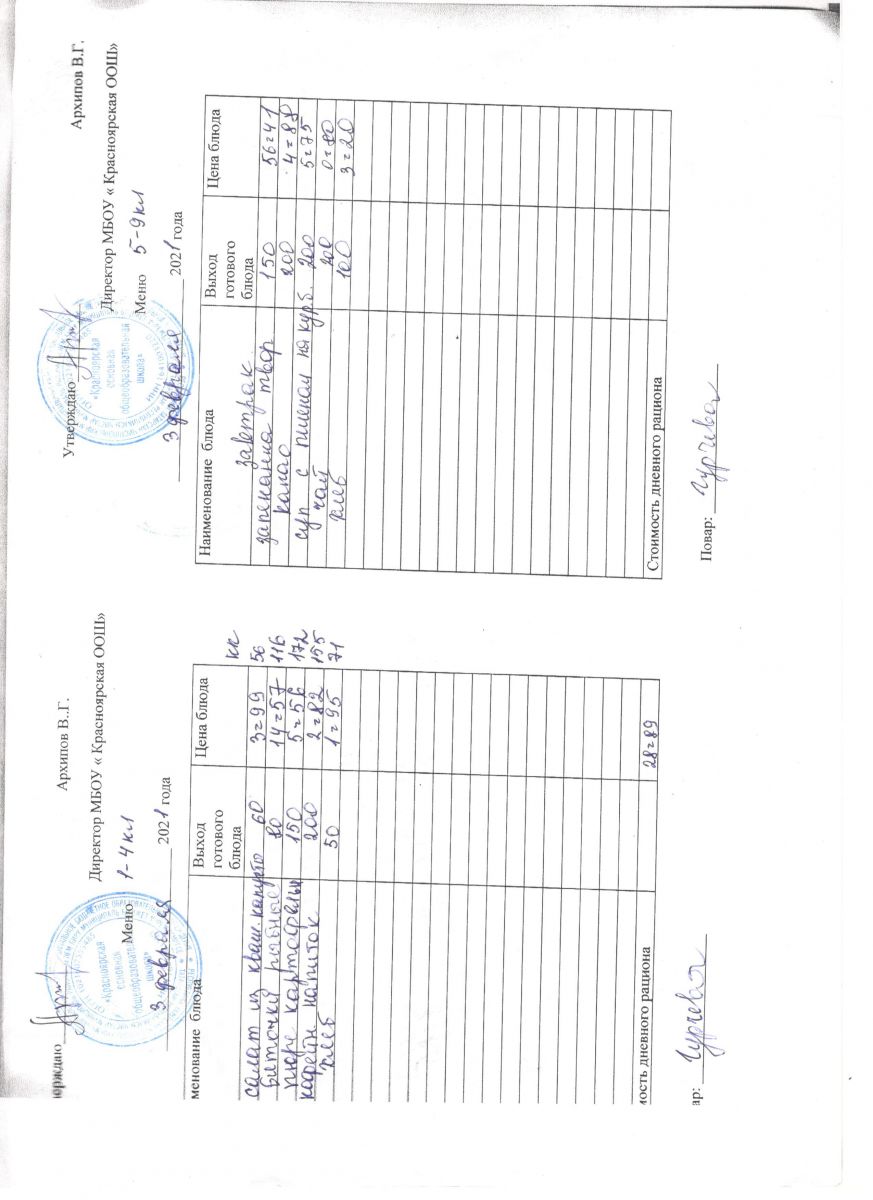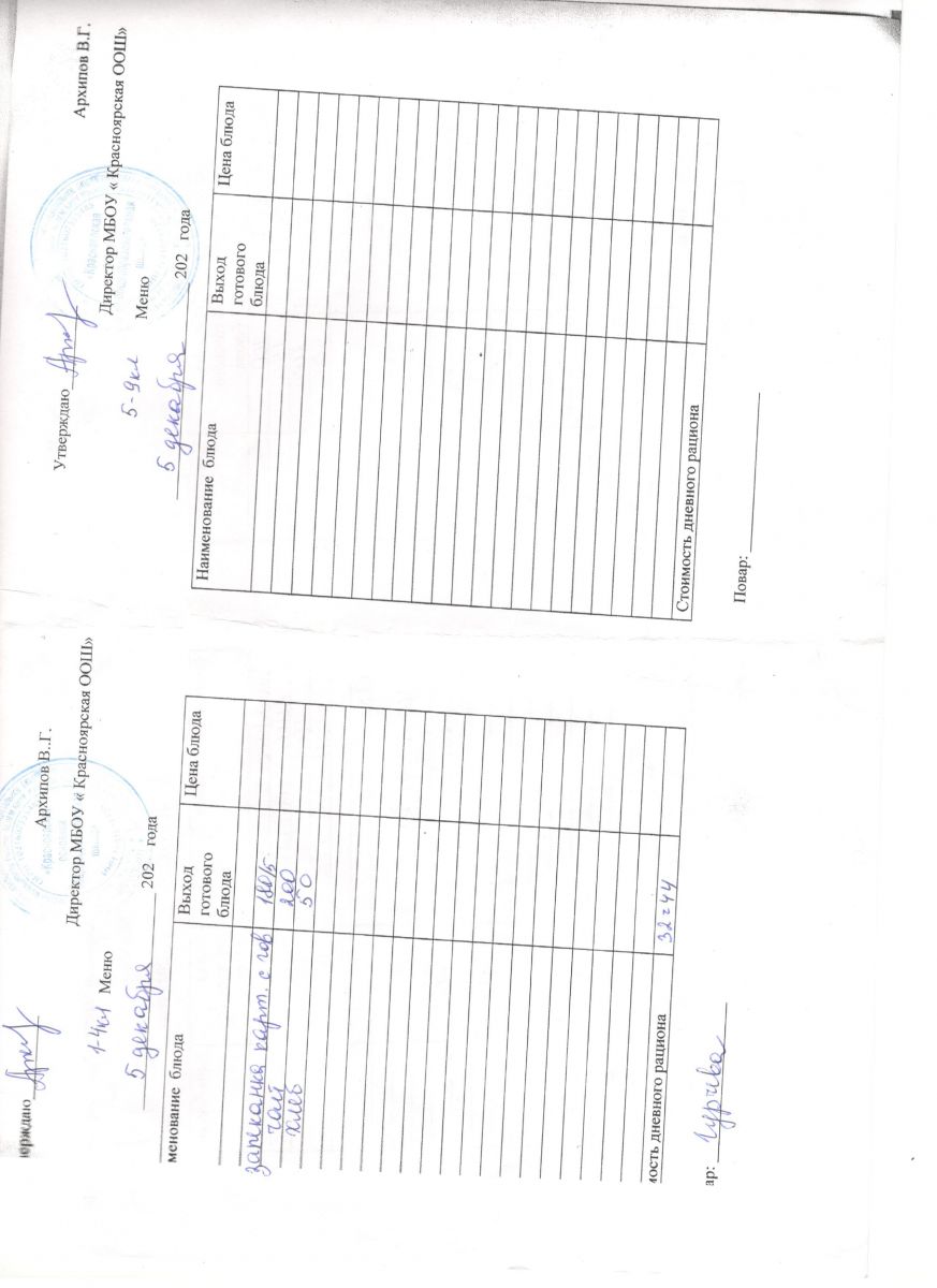 Меню учащихся 1 - 4 классов 1 неделя(зимний сезон) 2 неделя (зимний сезон)