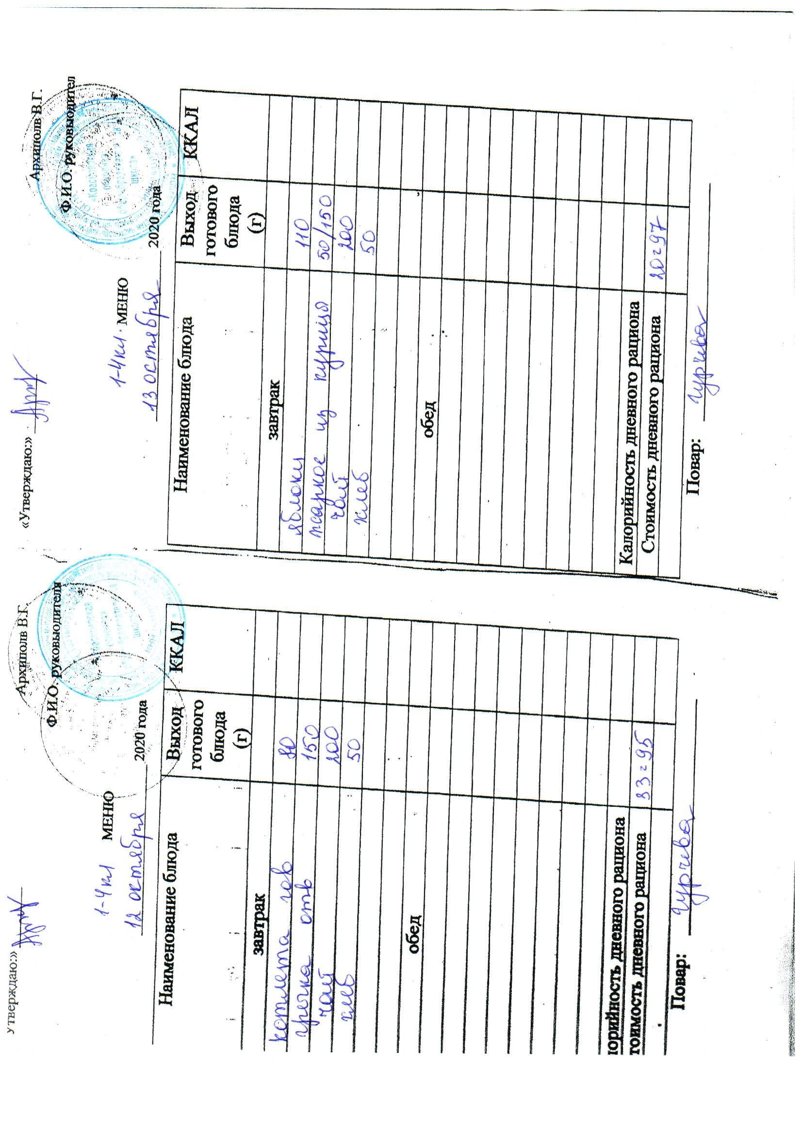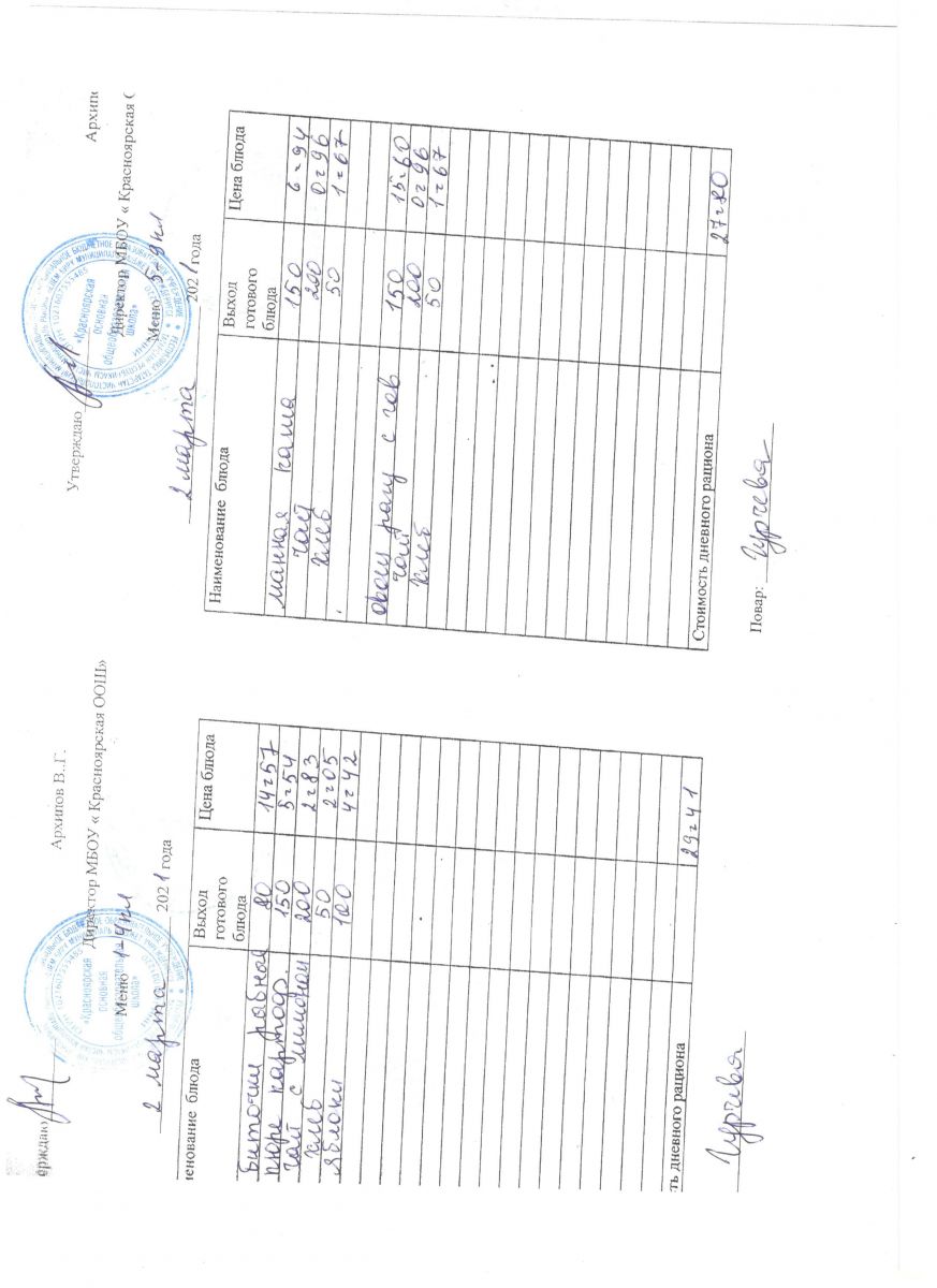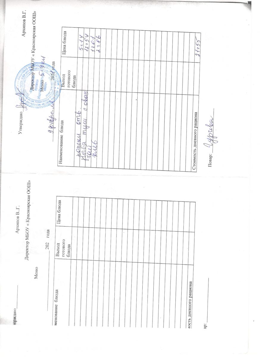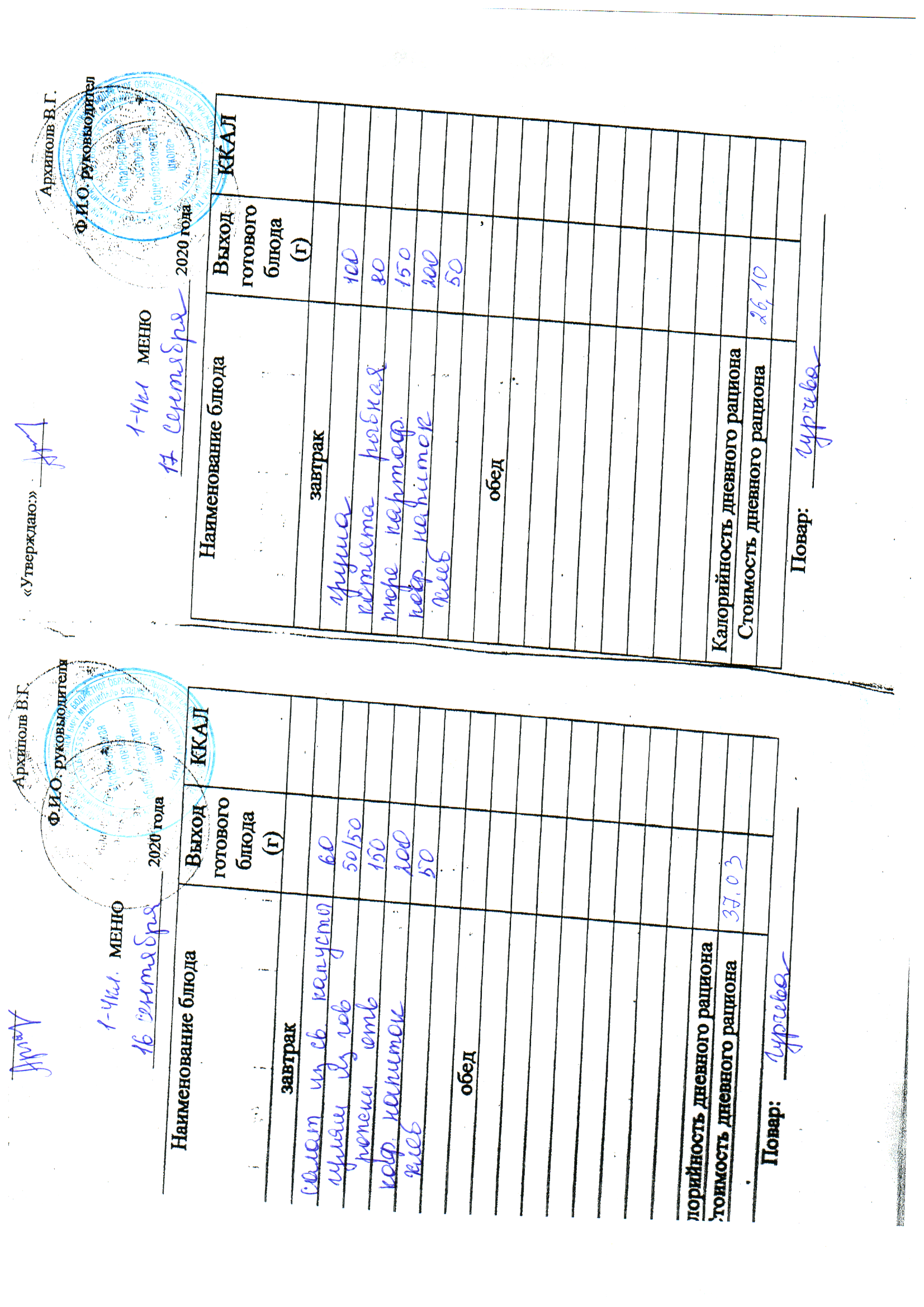 Меню учащихся 1 - 4 классов 1 неделя(зимний сезон) 2 неделя (зимний сезон)
