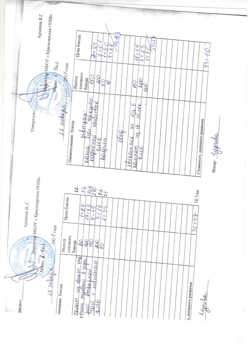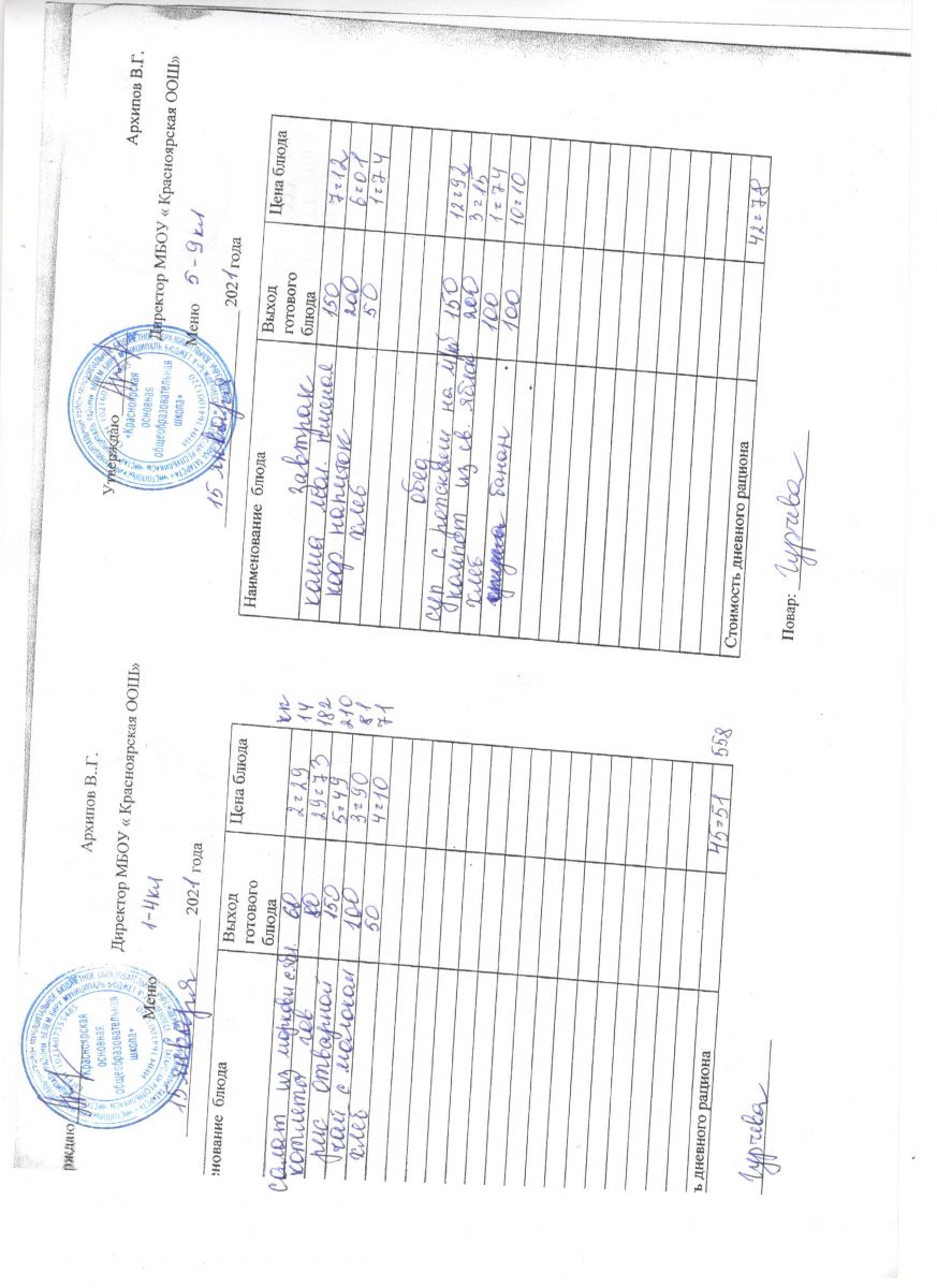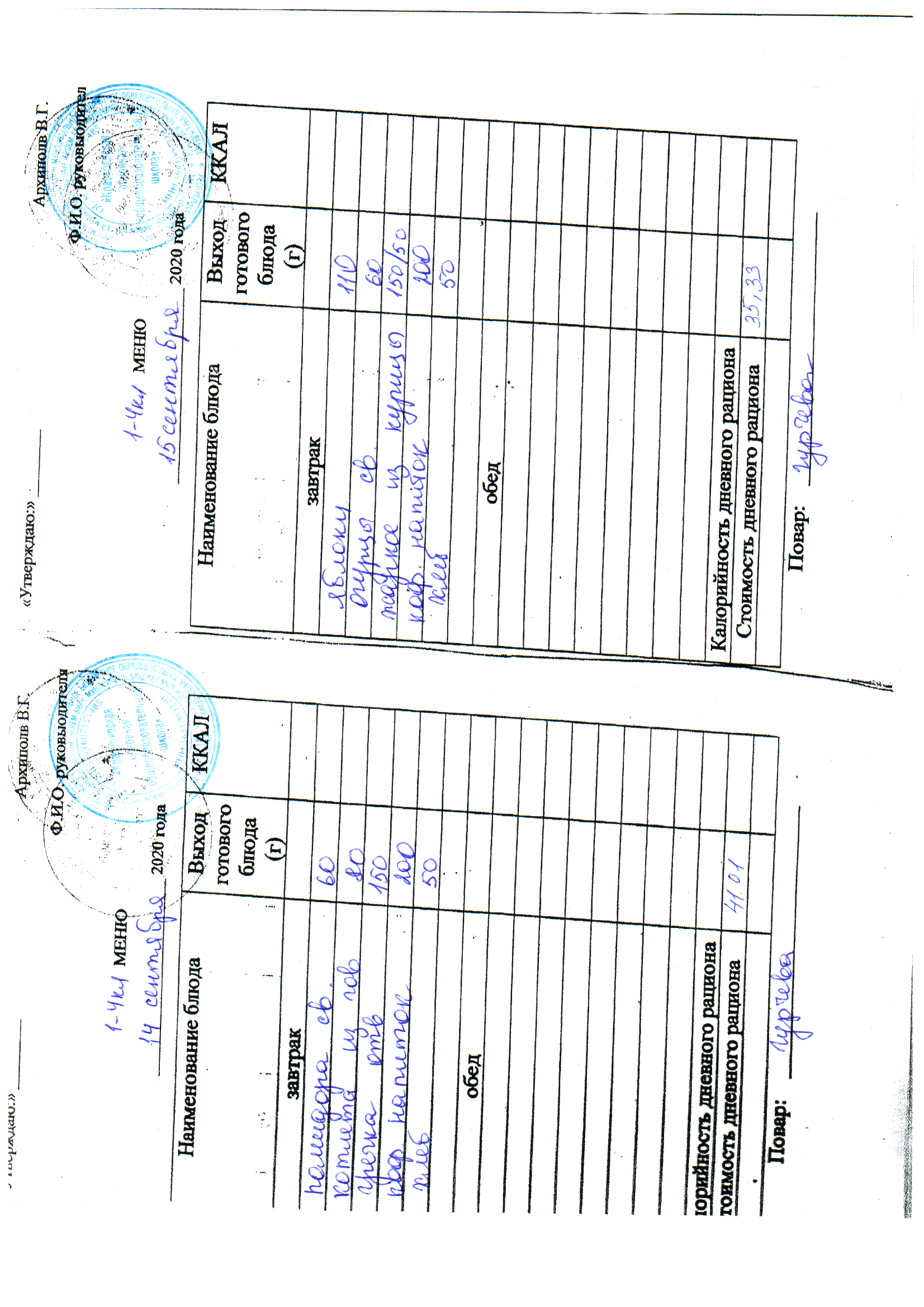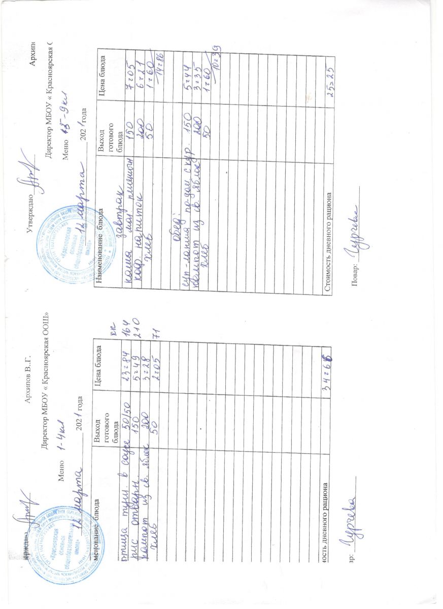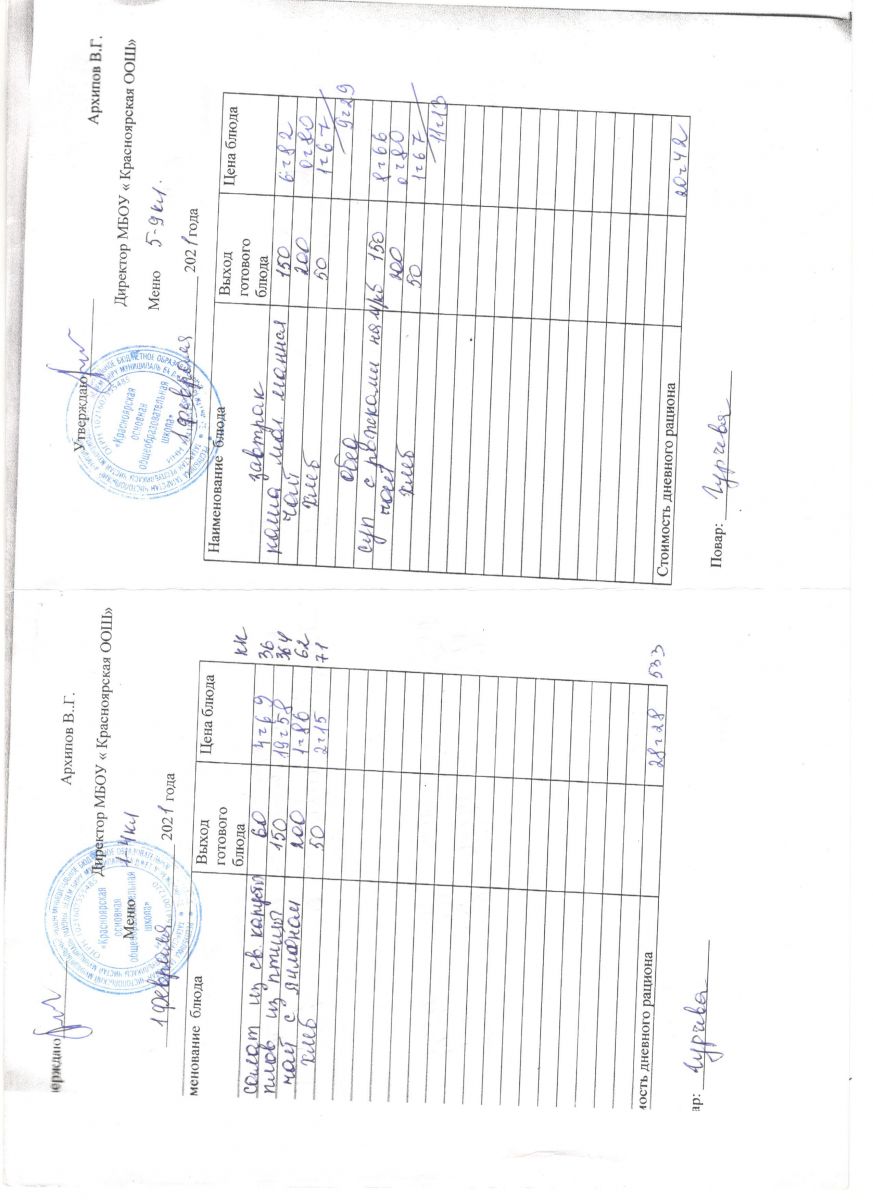Меню учащихся 1 - 4 классов 1 неделя(зимний сезон) 2 неделя (зимний сезон)
