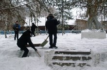 10 учащихся нашей школы участники Тимуровского движения совершили Трудовой десант по уборке от снега памятника Участникам ВОВ
