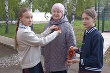 Бәйрәм алды көннәрендә балалар яхшы традиция буенча Георгий тасмаларын авыл халкына, укытучыларга һәм мәктәпнең башка хезмәткәрләренә тараттылар.