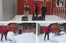 В рамках "Недели добра" учащиеся 7 класса провели акцию "Забота", по очистке снега у пошефных жителей села.