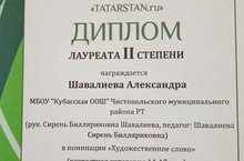 Поздравляем Шавалиеву Александру, ученицу 9 класса, с победой в Поволжском конкурсе эстрадного мастерства детских и юношеских творческих коллективов "TATARSTAN.ru