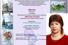 Дипломом ПОБЕДИТЕЛЯ II степени творческого художественного конкурса "Фантазии мастеров" за работу "Маки" в номинации "Живопись" была награждена наш учитель ИЗО Марина Леонидовна Гасишвили! Мы гордимся своим учителем! Поздравляем Вас, Марина Леонидовна!