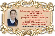 Айгуль - ПРИЗЁР муниципального этапа Республиканской олимпиады школьников по РОДНОМУ (татарскому) ЯЗЫКУ! 29.12.2020