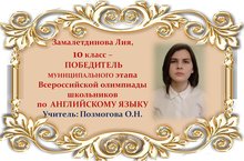 Поздравляем Лию Замалетдинову и её учителя Ольгу Николаевну Позмогову с ПОБЕДОЙ в муниципальном этапе Всероссийской олимпиады школьников по АНГЛИЙСКОМУ ЯЗЫКУ среди учащихся 10 классов и желаем им новых ПОБЕД! Молодцы!!!