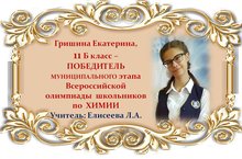 Поздравляем Екатерину Гришину и её учителя Любовь Александровну Елисееву с ПОБЕДОЙ в муниципальном этапе Всероссийской олимпиады школьников по ХИМИИ среди учащихся 11 классов и желаем им новых ПОБЕД! Молодцы!!!