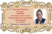 Поздравляем Милану Ахметову и её учителя Айрата Фазылзяновича Ахметова с ПРИЗОВЫМ МЕСТОМ в муниципальном этапе Всероссийской олимпиады школьников по ОБЖ среди учащихся 5 классов и желаем им новых ПОБЕД! Молодцы!!!