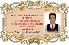 Поздравляем Евгения и его учителя Айрата Фазылзяновича Ахметова с ПРИЗОВЫМ МЕСТОМ в муниципальном этапе Всероссийской олимпиады школьников по ОБЖ среди учащихся 7 классов и желаем им новых ПОБЕД! Молодцы!!!