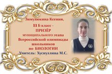Поздравляем Ксению Зимулюкину и её учителя Марину Сергеевну Хуснуллину с ПРИЗОВЫМ МЕСТОМ в муниципальном этапе Всероссийской олимпиады школьников по БИОЛОГИИ среди учащихся 11 классов и желаем им новых ПОБЕД! Молодцы!!!