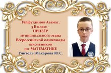 Поздравляем Азамата Гайфутдинова и его учителя Юлию Сергеевну Макарову с ПРИЗОВЫМ МЕСТОМ в муниципальном этапе Всероссийской олимпиады школьников по МАТЕМАТИКЕ среди учащихся 5 классов и желаем им новых ПОБЕД! Молодцы!!!