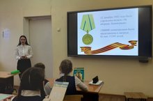 27 января - День воинской славы. Учащиеся 10б класса провели в 5а, 5б, 5в классах литературно-историческую композицию "Город-герой Ленинград", посвященную годовщине снятия блокады и 75-летию Великой Победы. Дети узнали о подвиге ленинградцев, о Тане Савичевой, 7 симфонии Шостоковича, спасении уникального семенного фонда и памятников культуры города.