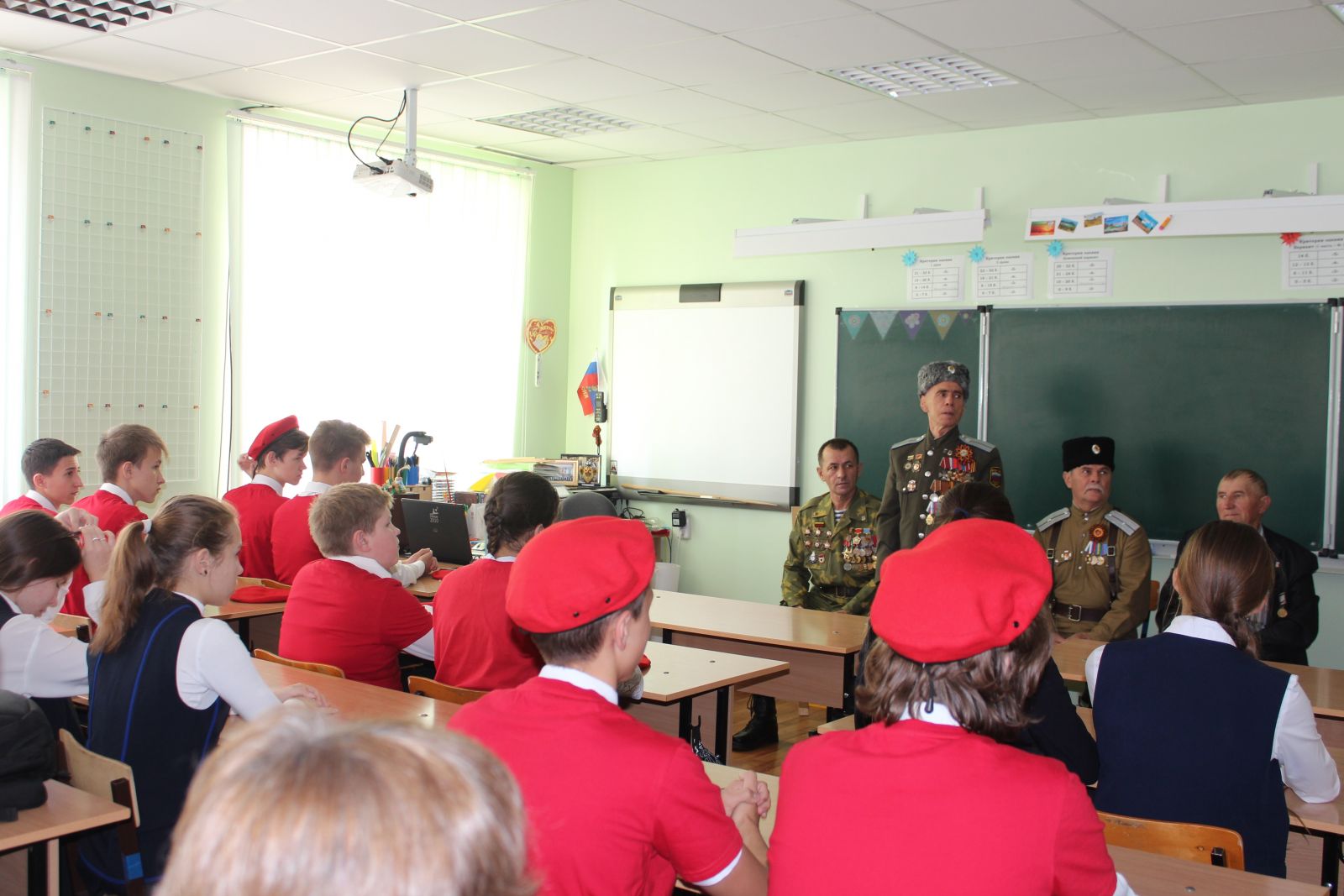 19.10.2018 в МБОУ "Лицей №1" прошёл урок "Мужества и памяти погибших участников локальных конфликтов. На данное мероприятия были приглашены гости. Это люди которые являются членами "Боевого братства"и Союза Казаков":