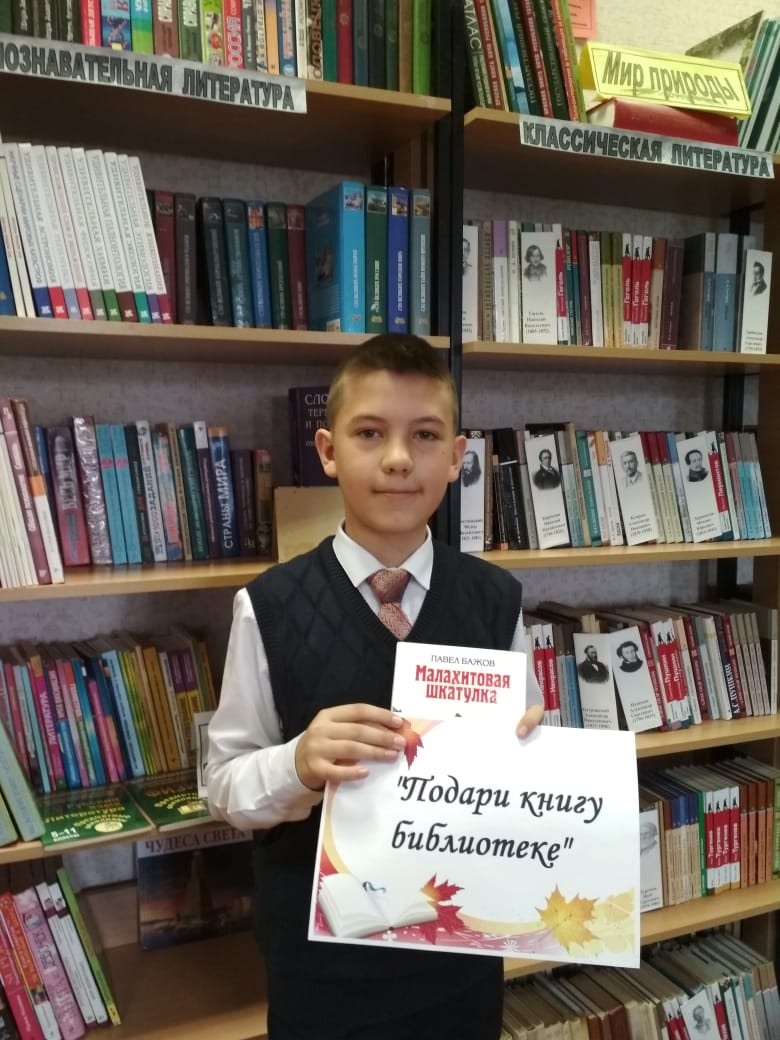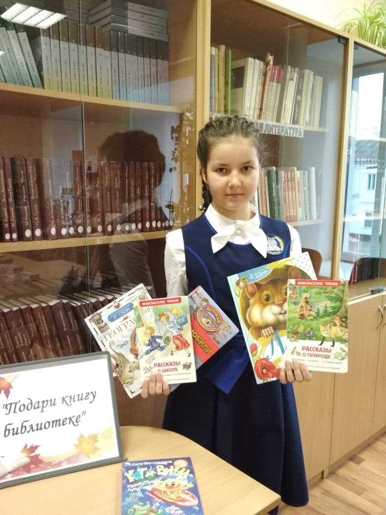В этом году наша школьная библиотека пополнилась 13 экземплярами художественной литературы. Говорим большое спасибо участникам акции: Коробейниковой В., 9а кл. (6 книг); Фаттаховой Д., 5а кл. (6 книг); Кудрявцеву К., 5а кл. (1 книга)